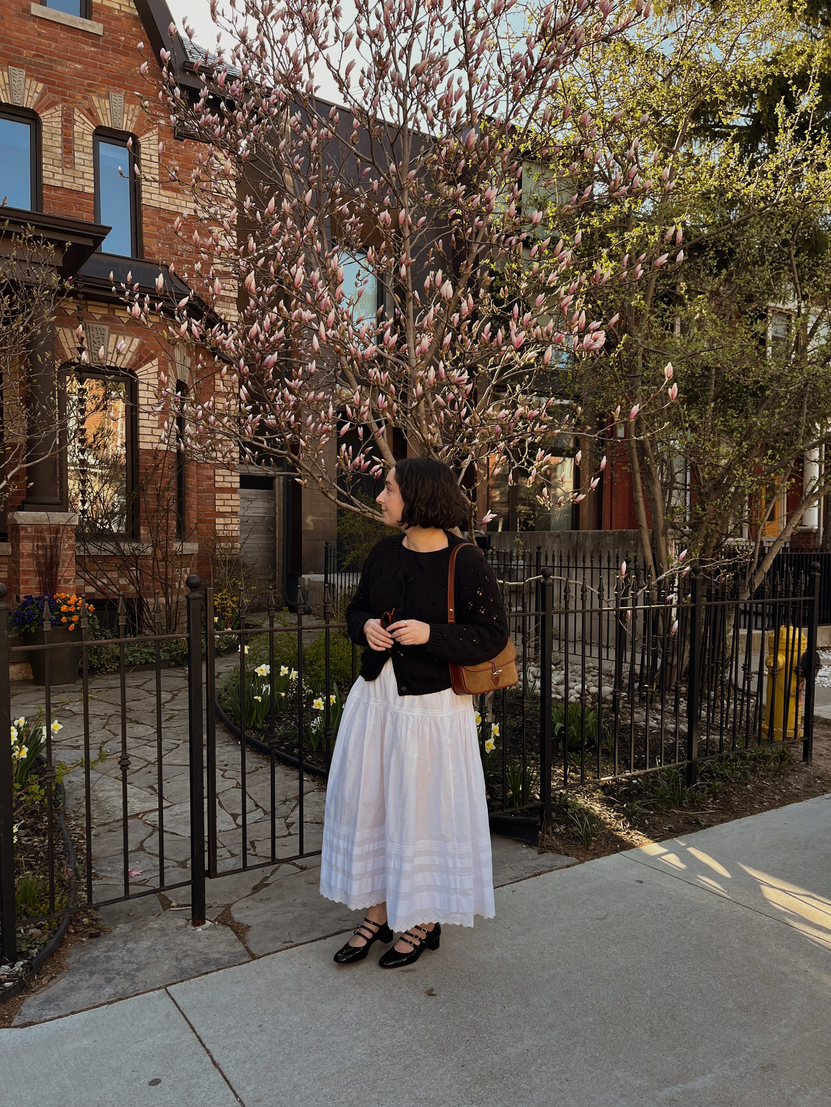 Eventually the changes begin to feel more tangible: the evenings stretch on and mornings feel a little bit easier when soundtracked by chirping birds and a crack of light through the curtains. The sun stretches deeper into our north-facing apartment, first a little bit above my desk in the morning, and by April, the brick wall opposite becomes illuminated by evening sun. The daffodils and tulips sprout up from the neighbourhood flower beds, and although not yet bloomed, there’s a subtle damp, earthy scent that seems to only exist in this transitory period of time.